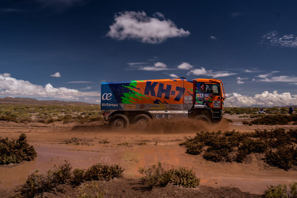 Como el resto de la caravana del Dakar, el KH-7 Epsilon Team ha tenido que afrontar este miércoles una jornada triste de camino hacia Chilecito después de que la organización de la carrera se viese obligada a anular la novena etapa, con salida en Salta y llegada a esta otra localidad argentina. Las inclemencias meteorológicas no están perdonando en esta edición y ayer era un desprendimiento de tierras a causa de las lluvias el que se interponía en el camino del rally.