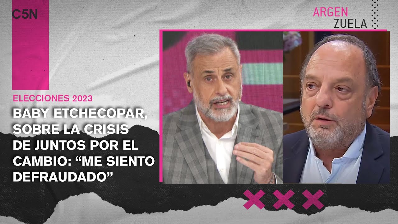El conductor radial y televisivo Baby Etchecopar aseguró en diálogo con Jorge Rial en Argenzuela que se siente "defraudado" con la crisis de Juntos por el Cambio por la decisión de Patricia Bullrich de apoyar al libertario Javier Milei, de cara al balotaje del domingo 19 de noviembre contra el ministro de Economía y postulante de Unión por la Patria, Sergio Massa.